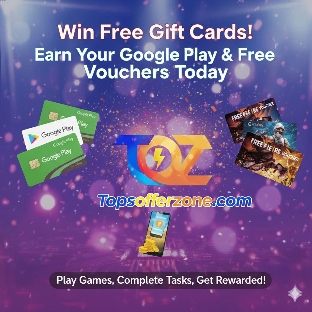 “Why spend money when you can earn rewards? Topsofferzone is your source for absolutely free gift cards. Our users are constantly winning Google Play Gift Vouchers, perfect for buying diamonds in your favorite mobile games or getting premium subscriptions. For the millions of mobile gamers, we feature exclusive access to Free Fire Gift Cards/Vouchers, allowing you to unlock characters, skins, and weapon crates instantly. Complete simple tasks or participate in our daily quizzes and claim your free Gift Card earnings now!”